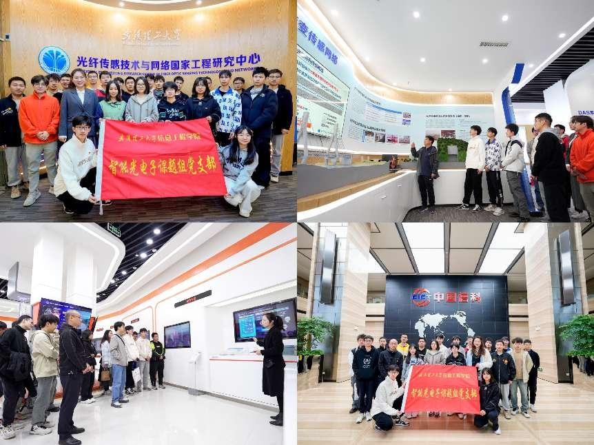 11月19日,支部成员前往武汉理工大学德生楼和烽火通信科技股份有限公司进行实践访学。在德生楼,支部成员充分学习到光纤传感器作为新质传感器的代表,在智慧交通、智慧医疗等领域发挥的重要作用;在烽火公司,支部成员了解并熟悉了中国光纤通信的发展历史与发展现状,认识到中国光领域的发展进步与中国科技创新能力的发展进步同频共振。通过了解我国在光纤领域取得的成就,寻访一代代追光人的追光之路,有力加深了支部党员对理论学习知识的认知程度,坚定了支部成员科研报国的使命决心,充分落实党支部“为党育人、为国育才”使命任务。