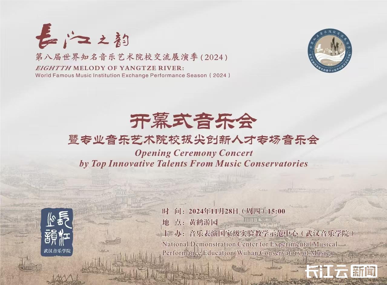 11月27日下午,武汉音乐学院召开新闻发布会,长江云新闻记者从会上获悉,由该校音乐表演国家级实验教学示范中心主办的第八届“长江之韵·世界知名音乐艺术院校交流展演季”即将在黄鹤游园开幕。