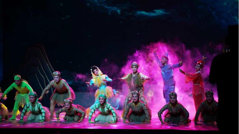 《仙岛湖之恋》取材自阳新当地的民间传说与风土人情,围绕仙岛湖和白马山编织出一段浪漫绮丽的爱情故事,巧妙融合“飞来钟”“白马童子”等元素,让神秘传说在舞台鲜活起来。剧中,演员们历经多番打磨,力求以细腻表演诠释角色,从深情对视到悲愤呐喊,举手投足间尽显功底,将人物的爱恨嗔痴传递给观众。其独特的采茶戏唱腔,兼具柔美与高亢,仿若山间清泉与穿林劲风,势必在剧场内萦绕出阳新风情的动人旋律