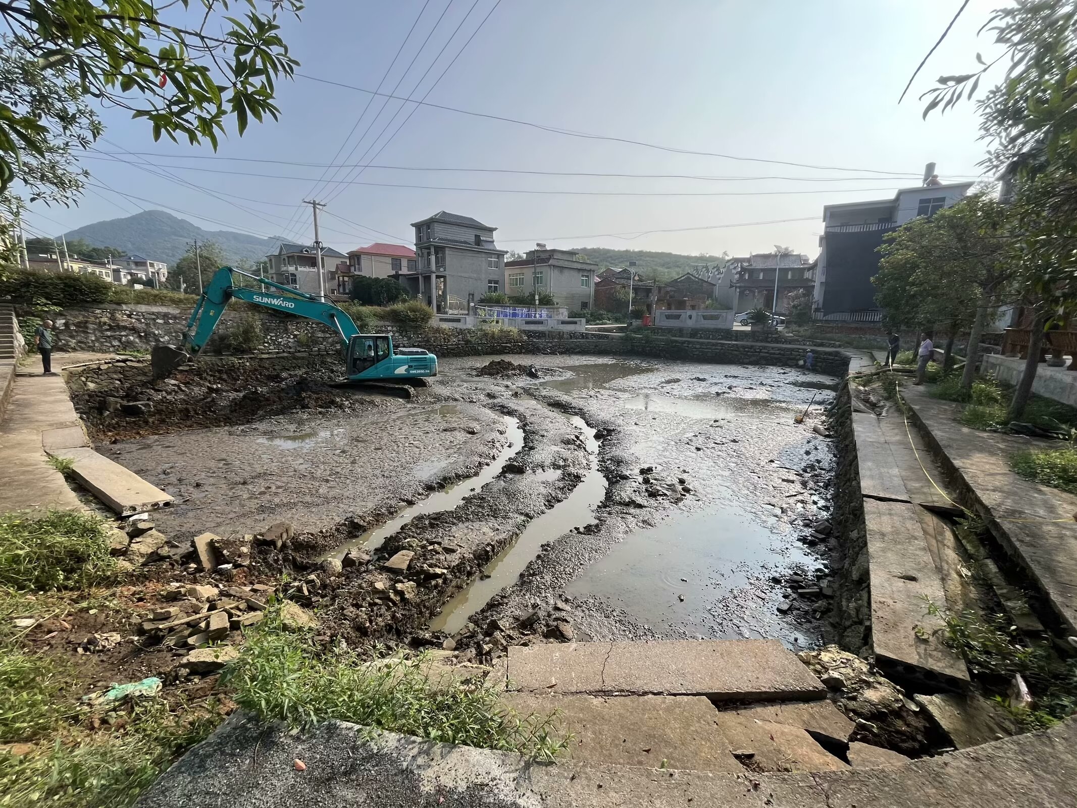 在改造过程中,施工团队首先对旧水塘进行了彻底清理,清除了多年积累的淤泥和垃圾,为水塘的焕然一新打下了坚实基础。同时,为了实现水污分离,施工团队在水塘中安装了排污管和沉淀池,确保了村民用水的安全。