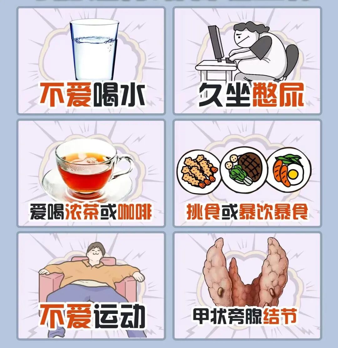 有些人只吃素草酸含量高,有些人又只吃大鱼大肉或高蛋白食物……这些饮食习惯导致了草酸钙、磷酸钙结石等不同成分的结石形成。因此,均衡饮食是预防万病之本。暴饮暴食也是同理。