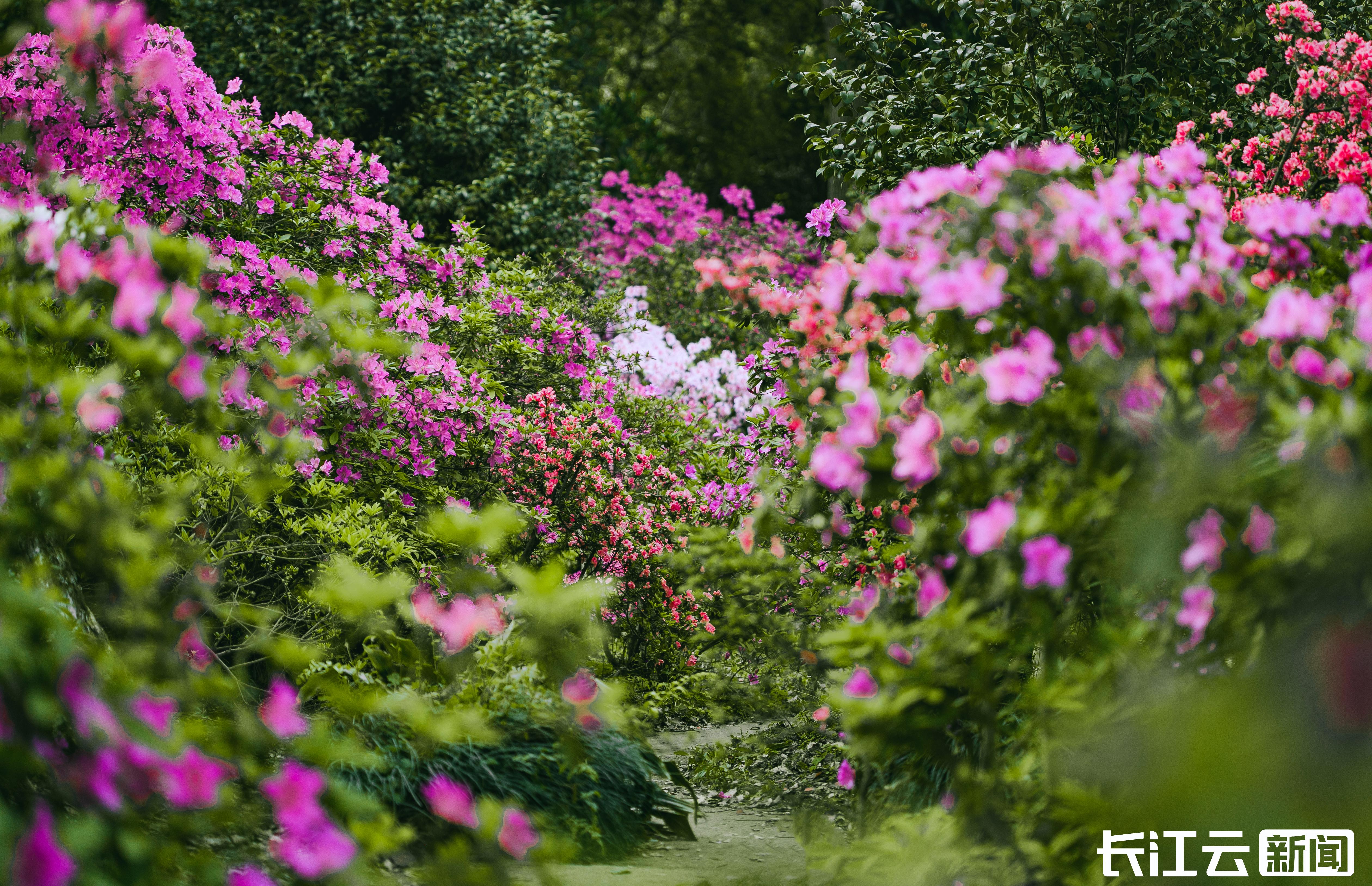 当七万株杜鹃点燃春山,野生鹿角杜鹃携山野精灵踏雾而来。武汉植物园收集保育杜鹃200多种,是武汉杜鹃花种类最多的地方,拥有岭南杜鹃、溪畔杜鹃等杜鹃野生种,少见的绿色杜鹃、橙色杜鹃,还有野生杜鹃王鹿角杜鹃,将山林野趣引入都市。嶙峋怪石间流淌的花溪,将高山林海的野性诗意浓缩成方寸仙境。花开时节满园鲜艳,好似彩霞绕林,打开七彩春天。每年4月,杜鹃花与阴生植物区的奇石、怪桥、溪流共构人间仙境。