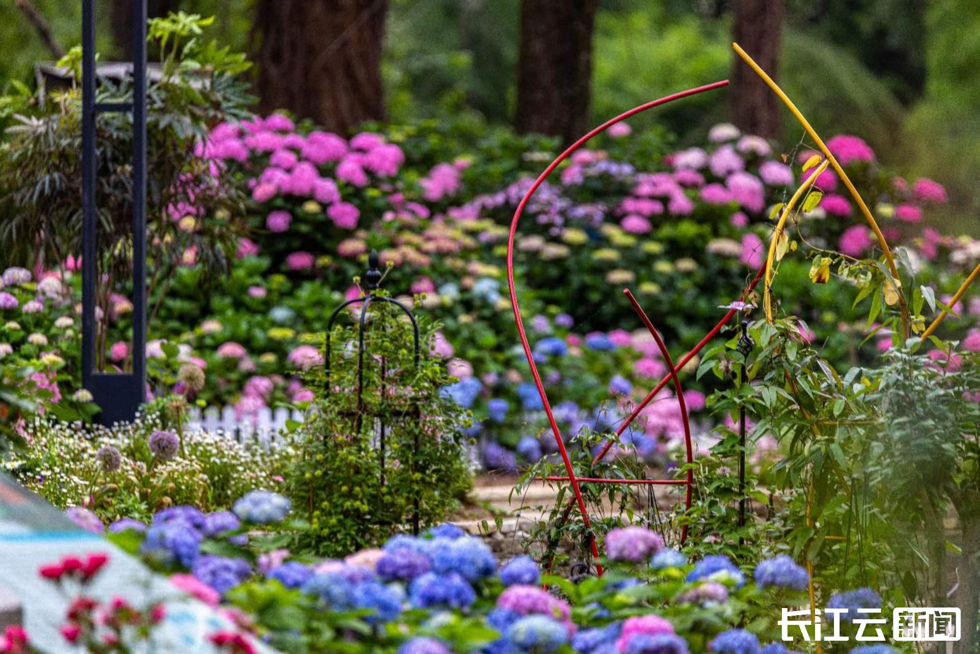 4月下旬的中央花境大道,集齐“无尽夏”“花手鞠”等花园里的绣球爆款。数千绣球化作印象派调色盘,用斑斓色彩接力晚春,将浪漫绵延进无尽夏日。蓝紫渐变的绣球在睡莲池畔流转光影,粉色绣球与复古红房带来欧式风情,在层层叠叠的花海中,一头扎进油画般的莫奈花园。