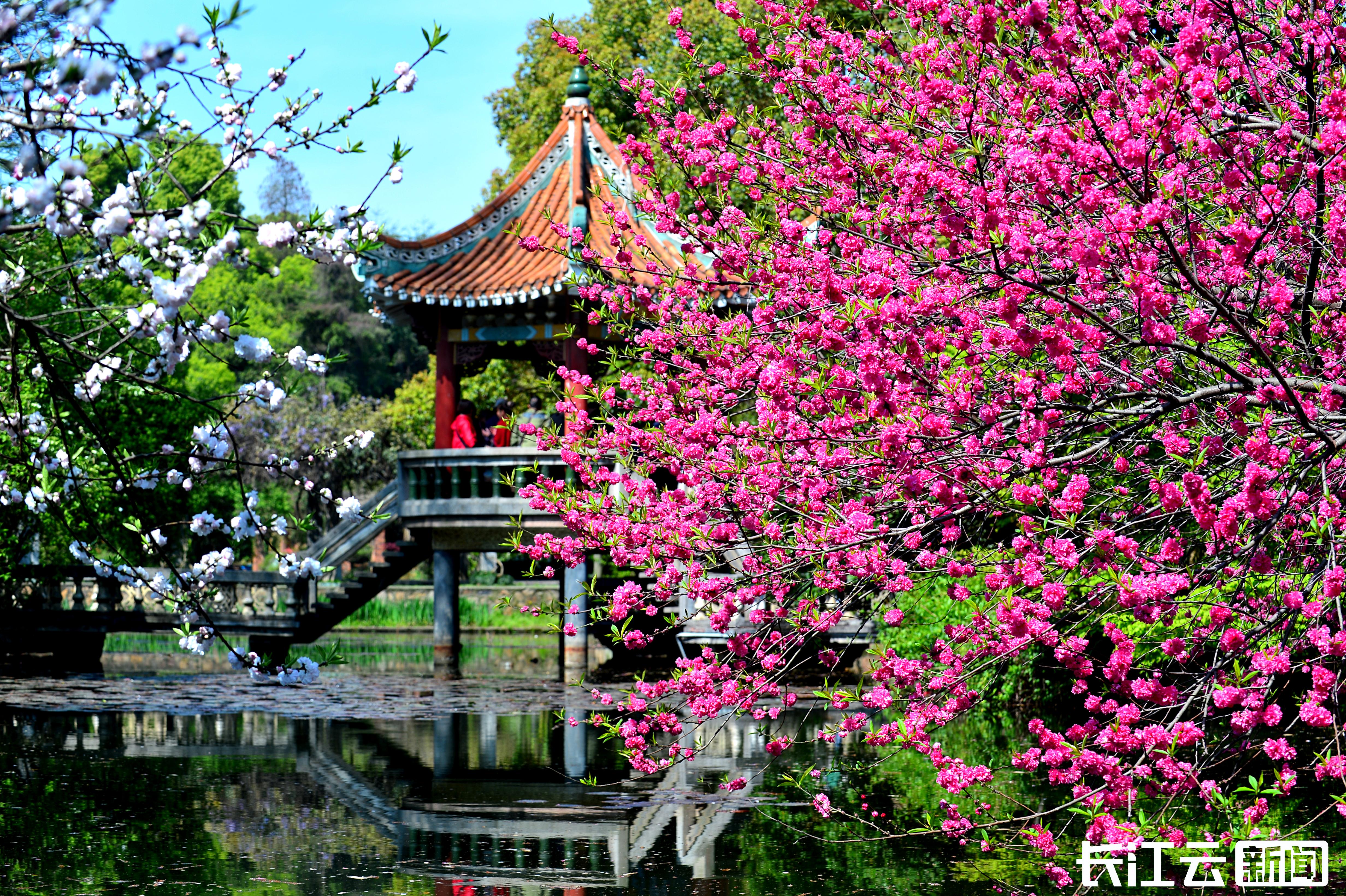 武汉植物园以桃花园—野果—蔷薇园为中心,打造了含桃花、梨花、李花、海棠、樱花、郁李、棣棠、李叶绣线菊等20多种蔷薇科花卉的综合展示区,花卉数量达上万株。循着《诗经》的平仄,桃花园至蔷薇园的曲径串起东方美学的珍珠链。千株桃夭灼灼其华,李花飞雪暗香浮动,海棠垂丝欲说还休,蔷薇科花卉联袂演绎了唐宋词韵。