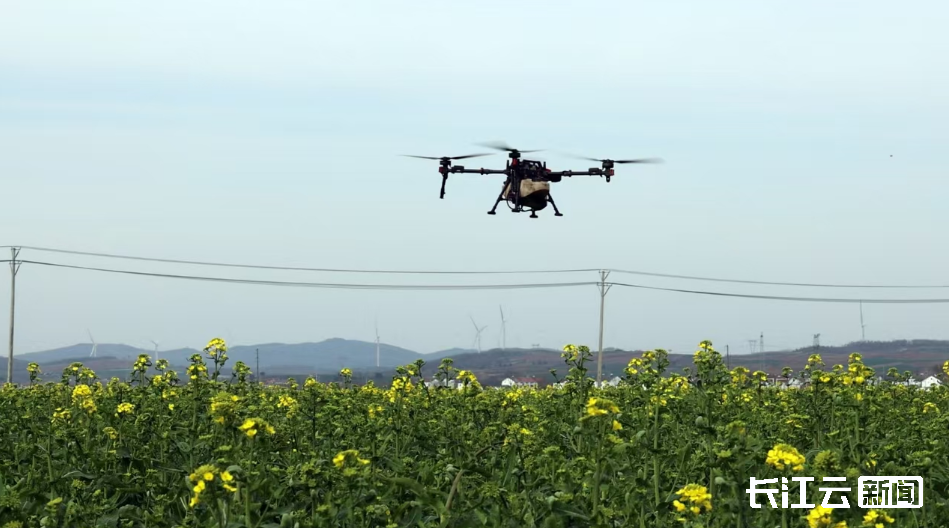 油菜“一促四防”是指通过无人机喷洒防病、防虫、硼肥等混配液,促油菜生长,防花而不实、防早衰、防菌核病、防高温逼熟,达到增加角果数和粒重等作用,以此来增加油菜产量,为全年实现粮油丰收夯实基础。