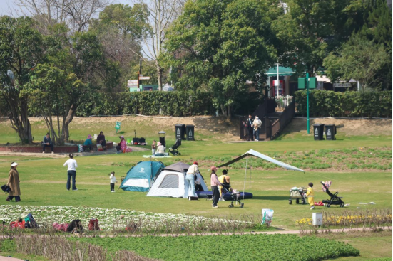 踏入花博汇,移步换景,只见露营帐篷星星点点。在帐篷里闻花香、天幕下煮清茶,在草坪上撒个野“去班味”,四周环绕花海美景,赏景视角得天独厚。赏花季,武汉花博汇为游客带来“千姿百态”的游玩体验,景区负责人介绍:“我们将举办‘花火开新季’春季活动,白天赏花海、看演艺,晚上看火秀、观烟花,给游客提供白+黑丰富多彩的游玩体验!”