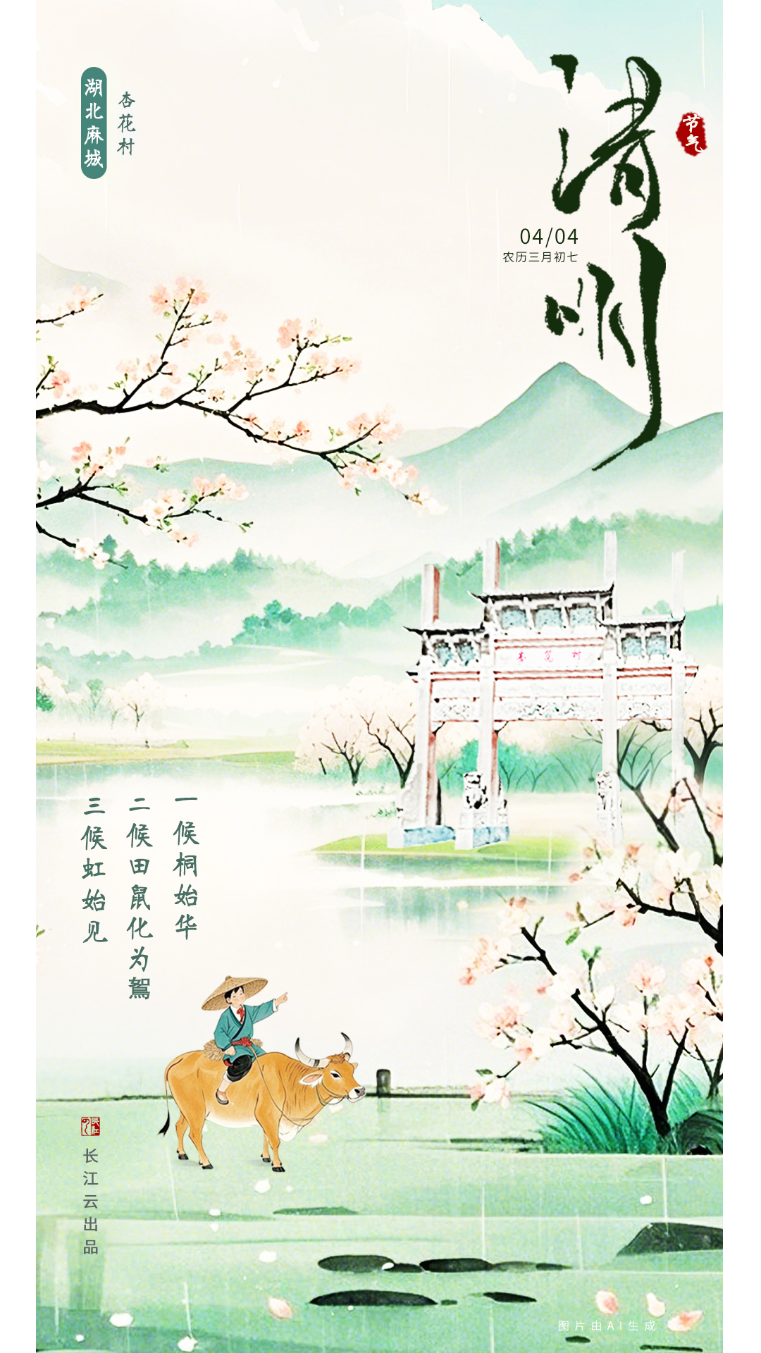 “万物生长此时,皆清洁而明净。故谓之清明。”细雨润新芽,纸鸢乘风起。当春风翻开二十四节气的书页,清明总是以水墨般的笔触,在天地间勾勒出生命的两种姿态:一半是泥土下静默的根系,一半是枝头上雀跃的新绿。清明,亦节亦气,既标志着时令节气的更迭轮回,又承载着深厚的民俗情感,启示我们亲近自然、融洽亲情、凝聚力量。