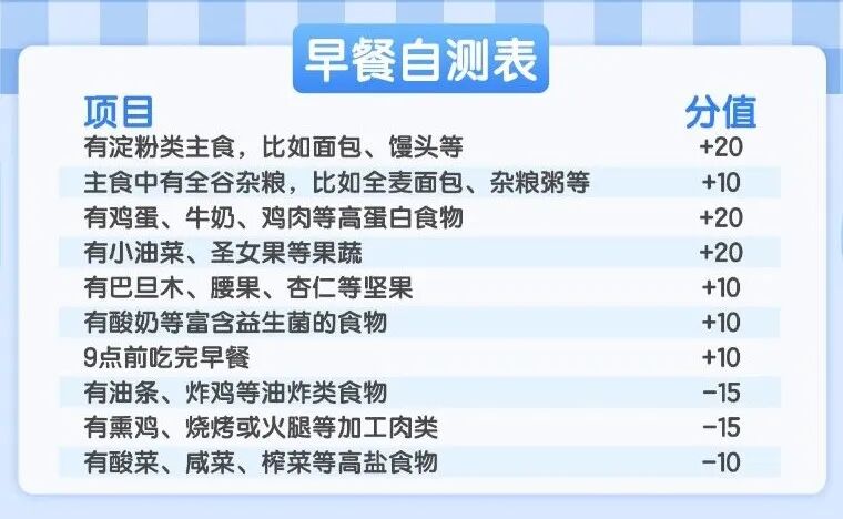 早餐是人体每日营养的开始然而数据显示我国居民早餐营养不充足比例在80%以上你的早餐及格吗?不妨先来测一测!