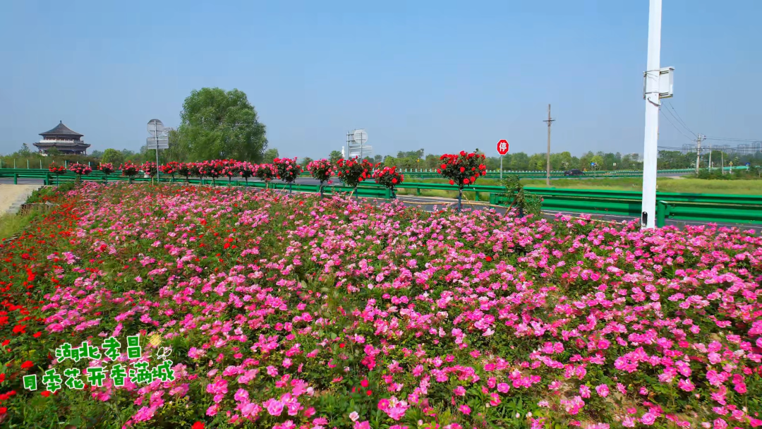 抬眼望去,孝昌的月季花海正处于盛放之际,肆意铺展着独属于春末的华美乐章。花盘丰盈仪态万千,红若云霞、粉似烟罗,恰似大地绽放的盈盈笑靥。