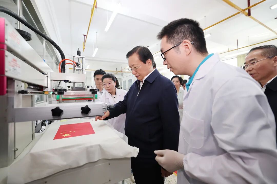 省领导郭元强、彭勇,武汉大学党委书记黄泰岩、校长张平文院士,武汉纺织大学校长徐卫林院士参加相关调研。