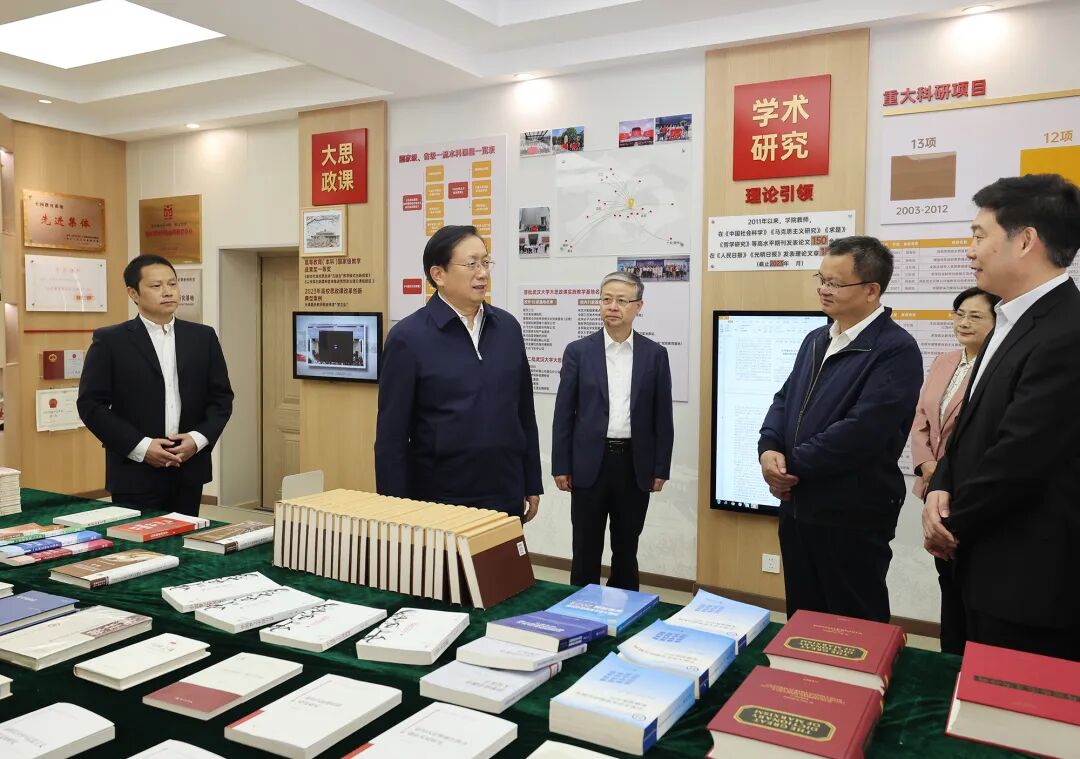 武汉大学马克思主义学院是首批“全国重点马克思主义学院”。王忠林来到学院文化长廊,听取学院历史沿革、师资队伍、大思政课设置等情况介绍;在党的创新理论研究阐释成果陈列室,了解学院最新研究成果,希望学院坚持“两个结合”,加强党的创新理论体系化、学理化研究阐释,把伟大抗疫精神融入大学生思政课,引导大家“心往一处想、劲往一处使”,更好凝聚奋进新征程的磅礴力量。在武汉大学水利水电学院水资源工程与调度全国重点实验室,王忠林听取学院党组织建设、人才队伍建设、大学生党员发展等情况介绍,参观学院科技成果展厅和全国科学家精神教育基地,了解视觉测流产品等智慧水利成果转化应用情况,希望武汉大学继续发挥水利学科优势,为湖北治山理水提供有力支撑。王忠林指出,城市因名校而闻名,名校因城市而发展。武汉大学是湖北的一张亮丽名片,为湖北经济社会发展提供了强大的人才和创新支撑。希望武汉大学在党的建设和“双一流”建设上继续走在前列。湖北将优化服务、强化保障,助力武汉大学加快建成中国特色世界一流大学。