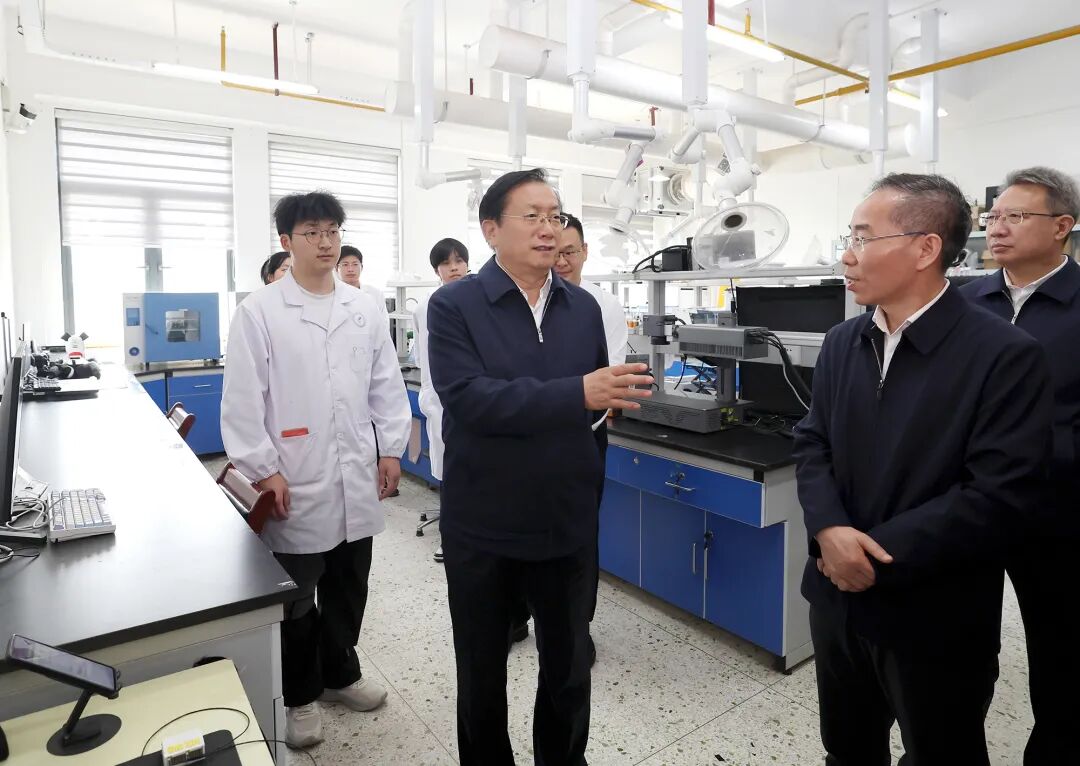 调研中,王忠林强调,全省高校要全面贯彻党的教育方针,牢牢抓住培养社会主义建设者和接班人这个根本任务,坚持办学正确政治方向,更好服务国家战略、融入地方发展。要着力落实立德树人,坚持为党育人、为国育才,推进习近平新时代中国特色社会主义思想进教材、进课堂、进头脑,以新时代伟大变革的生动实践唱响中国经济光明论、中国社会安全论、中国人民幸福论、大党大国责任论。要着力加快“双一流”建设,集中资源力量打造一流学科体系、一流人才队伍、一流教研平台,更大力度招引一批全球顶尖科学家和青年拔尖人才,不断提升办学水平和核心竞争力。要着力服务支点建设,发挥高校科技创新策源功能,聚焦我省“51020”先进制造业集群,努力在基础研究、关键技术、重大产品上取得突破,促进科技创新与产业创新融合发展。要着力推动党建和业务深度融合,坚持把抓好党建作为最大政绩,建设高素质教师队伍,形成高水平人才培养体系,严格落实意识形态责任制,把意识形态工作融入日常教学管理,切实筑牢师生思想防线,营造安全稳定校园环境,以高质量党建引领保障学校高质量发展。