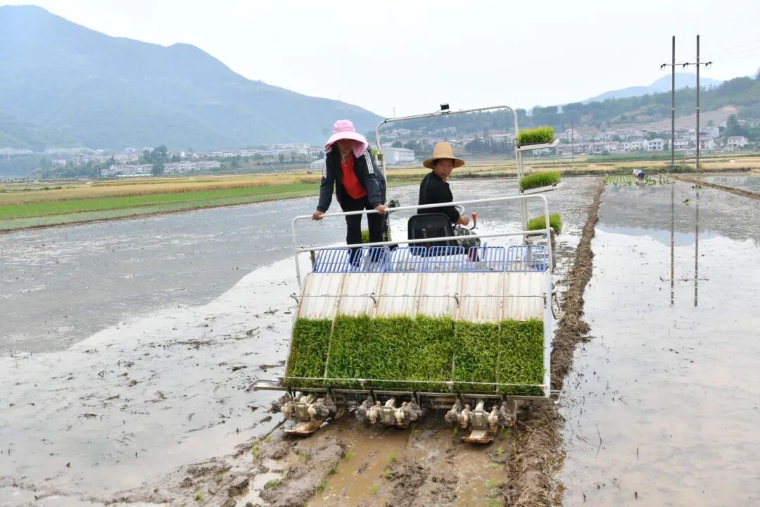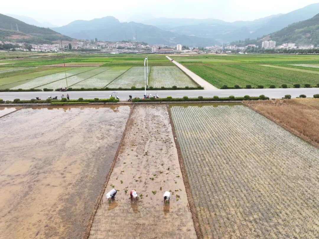 这边收割小麦,那边忙着插秧。在已收割完的田块上,村民们忙着犁田、插秧,为秋粮丰产丰收打好基础。