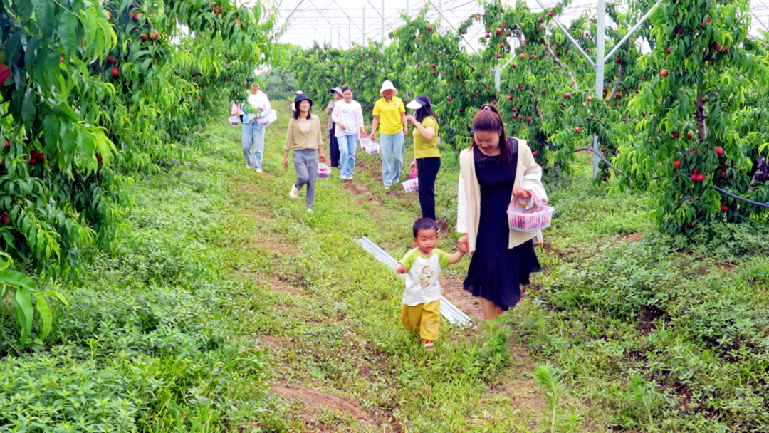 “基地4月有桑葚,5月是油桃。油桃采摘期过后,黄桃、李子、柿子等早熟品种会陆续成熟,形成紧密的供应链,持续为市场供应新鲜水果。除了采摘,我们还经营农家乐。游客多了,收入也增加了,日子越来越有盼头。”魏恒说。