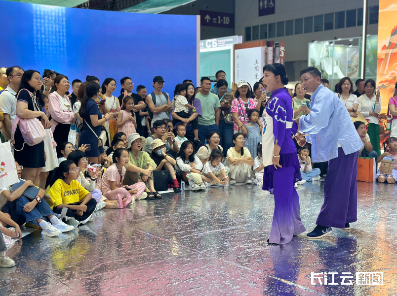 湖北的采茶戏、黄梅戏因其婉转的唱腔,声情并茂的表演,让整个湖北馆人气爆棚。观众们自觉而有序地或坐或站,听得津津有味。