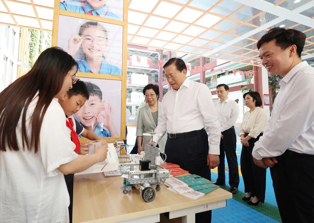 “六一”临近,洪山实验小学(北校区)处处洋溢着节日欢乐氛围,孩子们愉快地参加丰富多彩的节日活动。王忠林走进校园,听取红领巾讲解员介绍少先队活动展、少先队员风采展、“我的偶像是先锋”文化展,了解学校党建带队建活动和AI体育等特色课程开设情况,观摩美术、音乐等教学活动,参观孩子们的手工作品,并与他们亲切交谈。看到孩子们天真活泼、朝气蓬勃,王忠林格外高兴,祝福孩子们节日快乐、健康成长。他说,少年儿童是祖国的花朵和未来。希望全省少年儿童牢记习近平总书记谆谆教导,树立远大志向,锤炼意志品格,在学校做好学生、在家庭做好孩子、在社会做好公民,争当爱党爱国、勤奋好学、全面发展的新时代好少年,努力成长为堪当强国建设、民族复兴大任的栋梁之材。