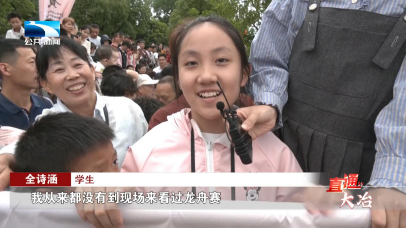 学生 全诗涵:我从来都没有到现场来看过龙舟赛,我觉得这里非常地热闹,充满激情与活力,我长大以后也要划龙舟。