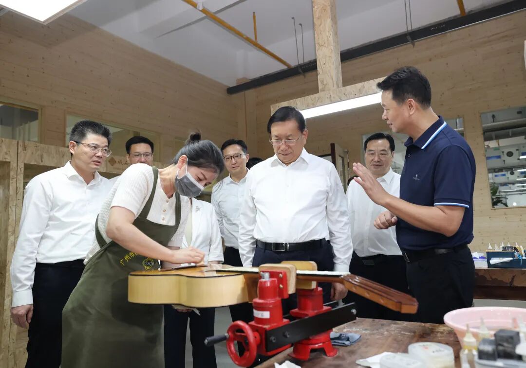 王忠林前往松滋市文化创新产业园,调研文化创新发展等工作,走进桐馨乐器有限公司吉他制造工厂,察看实木吉他全流程手工制作过程。他指出,文化创意产业作为经济发展的新增长点,具有巨大潜力和广阔市场前景。要用好园区现有基础,推动吉他产业从生产、销售向展示、体验、娱乐延伸拓展。要充分发挥荆州文化资源优势,着力培育一批有较强实力的文化企业,推出一批有影响力的文创产品,更好促进文化与产业融合发展。