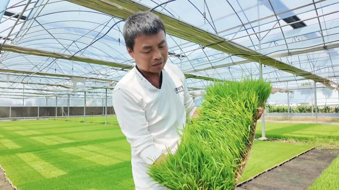 “合作社正在为村民代育太子稻的秧苗,一天能育秧8000多盘,供不应求,所有的机器都在运转,可忙了。”育苗大棚内,孝昌县光辉种植合作社理事长夏朝晖一边查看太子稻秧苗长势,一边告诉笔者。