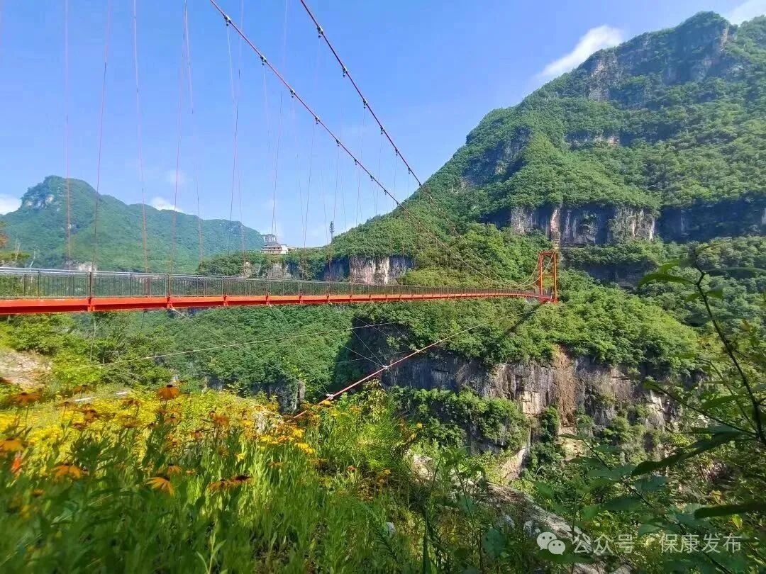 移步观景平台,乘坐索道缓缓上升,脚下是深邃的峡谷,两岸青山郁郁葱葱,层层叠叠的绿意尽收眼底。