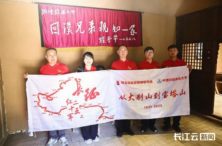 为纪念中国人民抗日战争胜利八十周年、中央红军到达陕北九十周年,近日,中南财经政法大学重走红二十五军长征路团队在湖北省延安精神研究会指导下启程。一行七人驱车辗转鄂豫陕甘宁五省,历时16天,调研15个县市、探访27处红色场馆,录制系列思政微课。团队以“五亲模式”(亲身经历、亲自感悟、亲手提炼、亲切讲授、亲力奉献)传承红色基因,将新时代成就融入“大思政课”,筑牢高校立德树人根基。