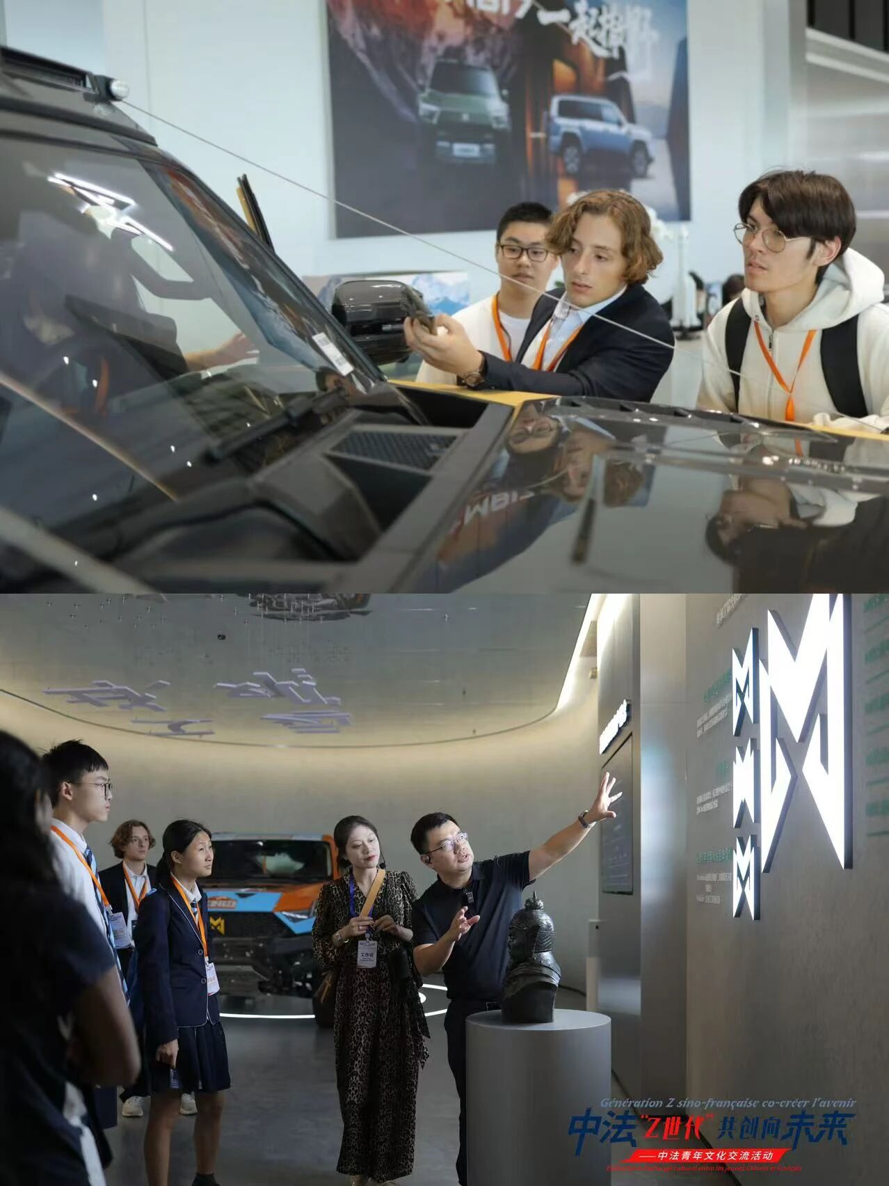 在东风汽车猛士科技园区,中法青年体验越野赛道,探索东风汽车军车基因在新能源越野领域的融合与延伸。通过孟骋总监的现场讲解,青年们学习了车辆智能驾驶、能源管理等核心技术原理。来自法国的留学生Claire表示:“中国企业在技术转化上的效率令人惊叹。”
