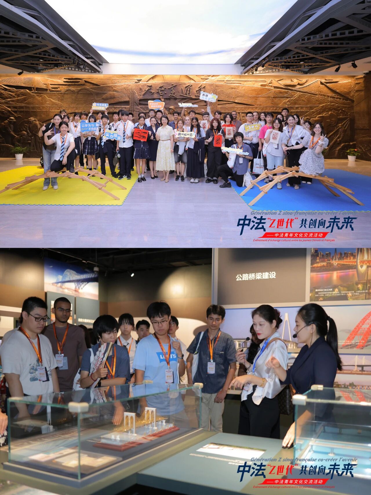 在桥梁博物馆,青年们沿着“古代桥梁—近代桥梁—现代桥梁” 的时间线,领略赵州桥、武汉长江大桥等标志性桥梁的建造技艺,深入了解中国桥梁建设从“跟跑”到“领跑”的发展历程。艺术组学生结合此前线上课程学习的中法建筑美学知识,从桥梁结构、装饰纹样中汲取灵感,为“中法友谊之桥”的设计补充了“公铁两用桥梁+中式风雨桥 + 法式拱券”的融合方案。