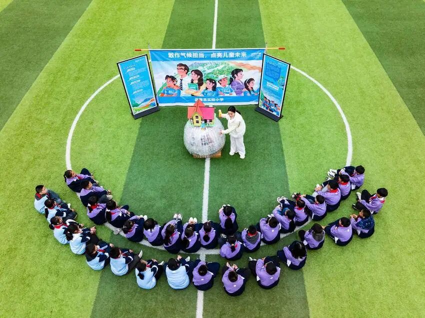 在世界儿童日来临之际,襄阳市保康县实验小学以“敢作气候担当 点亮儿童未来”为主题,开展户外互动问答、绿色理念宣讲、手工作品展示等系列活动,让学生在实践中种下环保种子,用小小力量为生态保护注入青春活力。