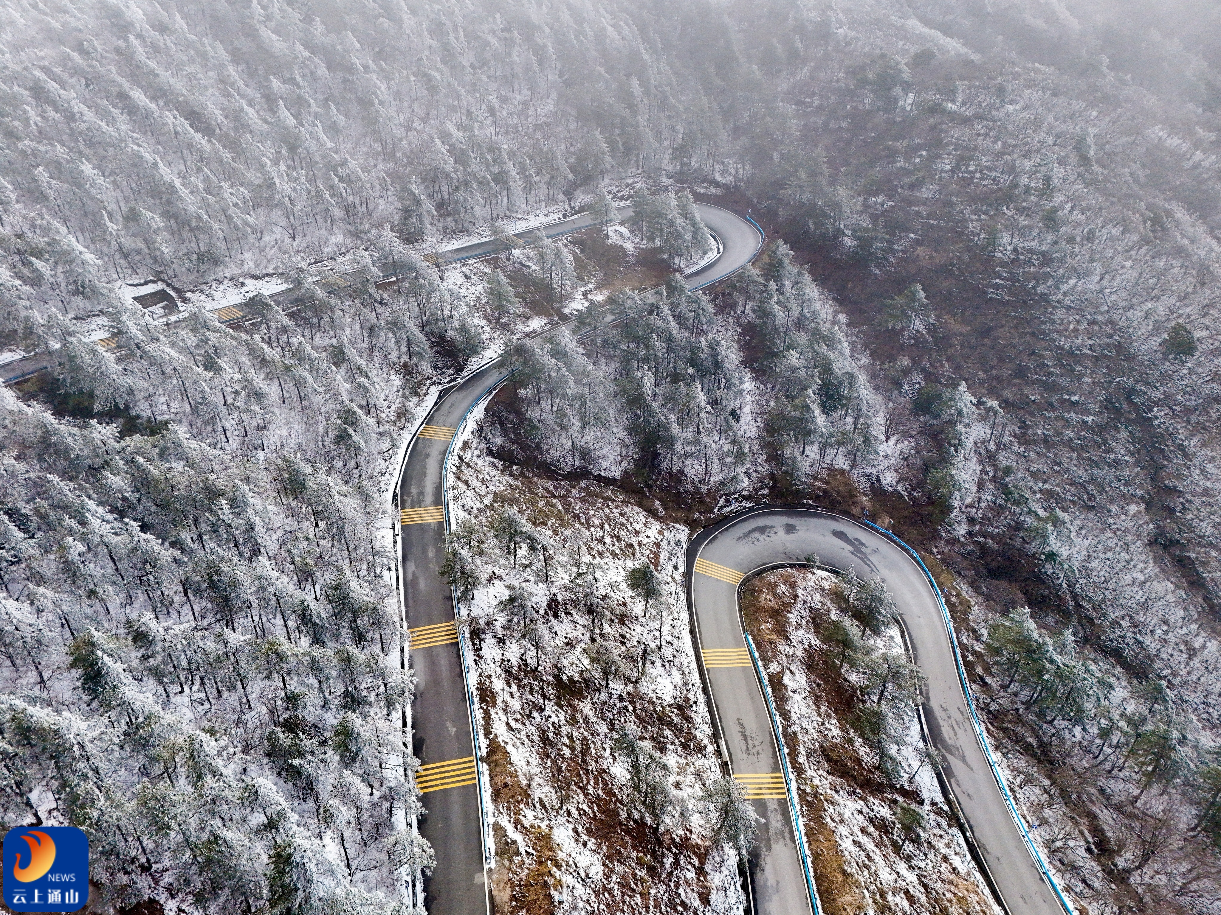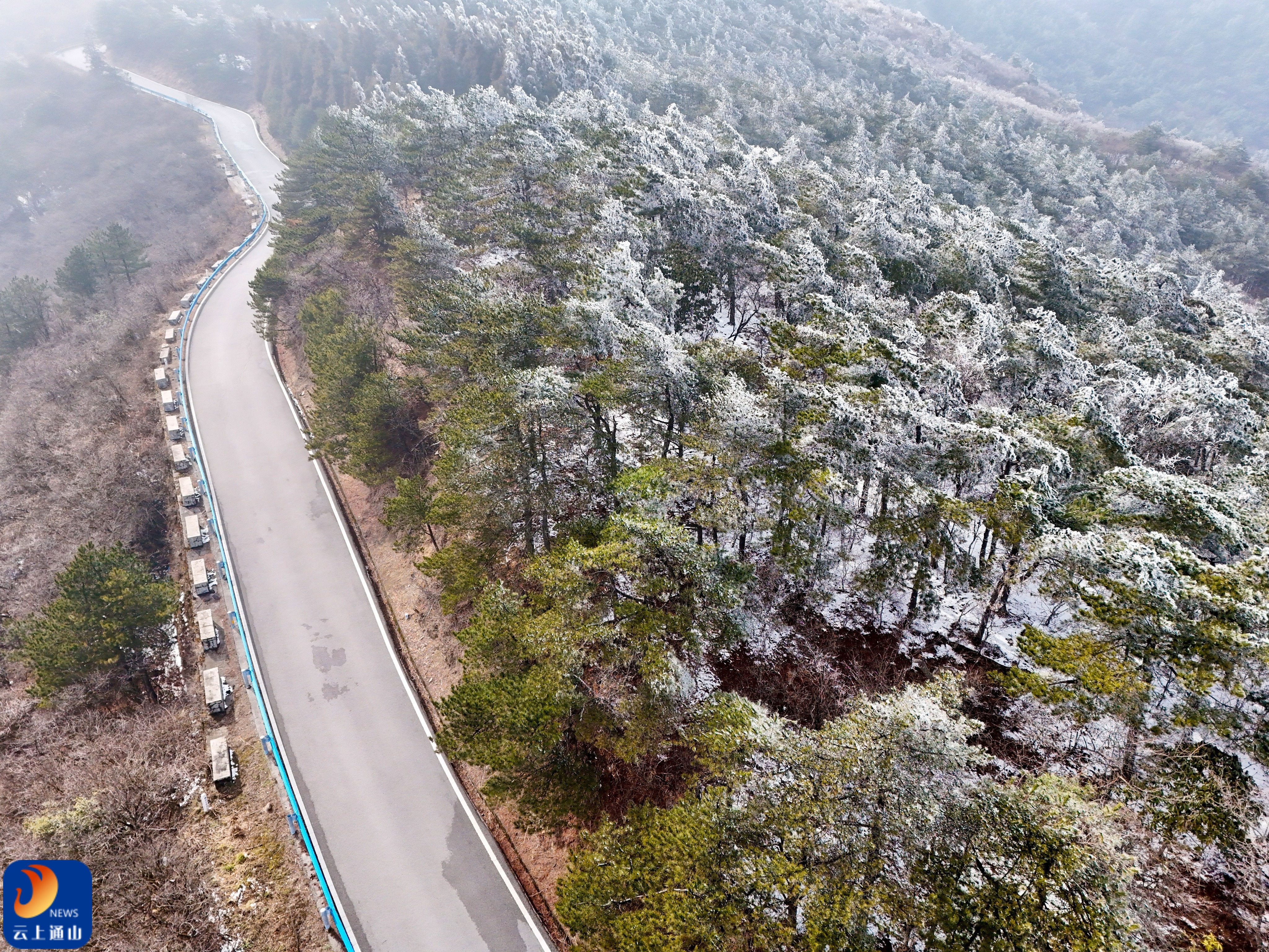 九宫山的雾凇未脱秋的底色,盘山公路的沥青还留着白日暖阳的温度,蓝白护栏旁的枯草仍带着黄褐色的秋意,云中湖畔的水杉枝桠还保持着秋日的疏朗。与此同时,冬的气息已悄然蔓延——松针裹上薄冰,凝作半透明的玉质模样,风过处,冰屑簌簌落下;水杉枝间悬着的冰棱,折射出晶莹光泽;路面与护栏上的薄霜,为山间覆上一层银白。