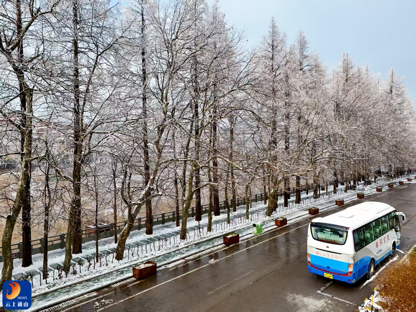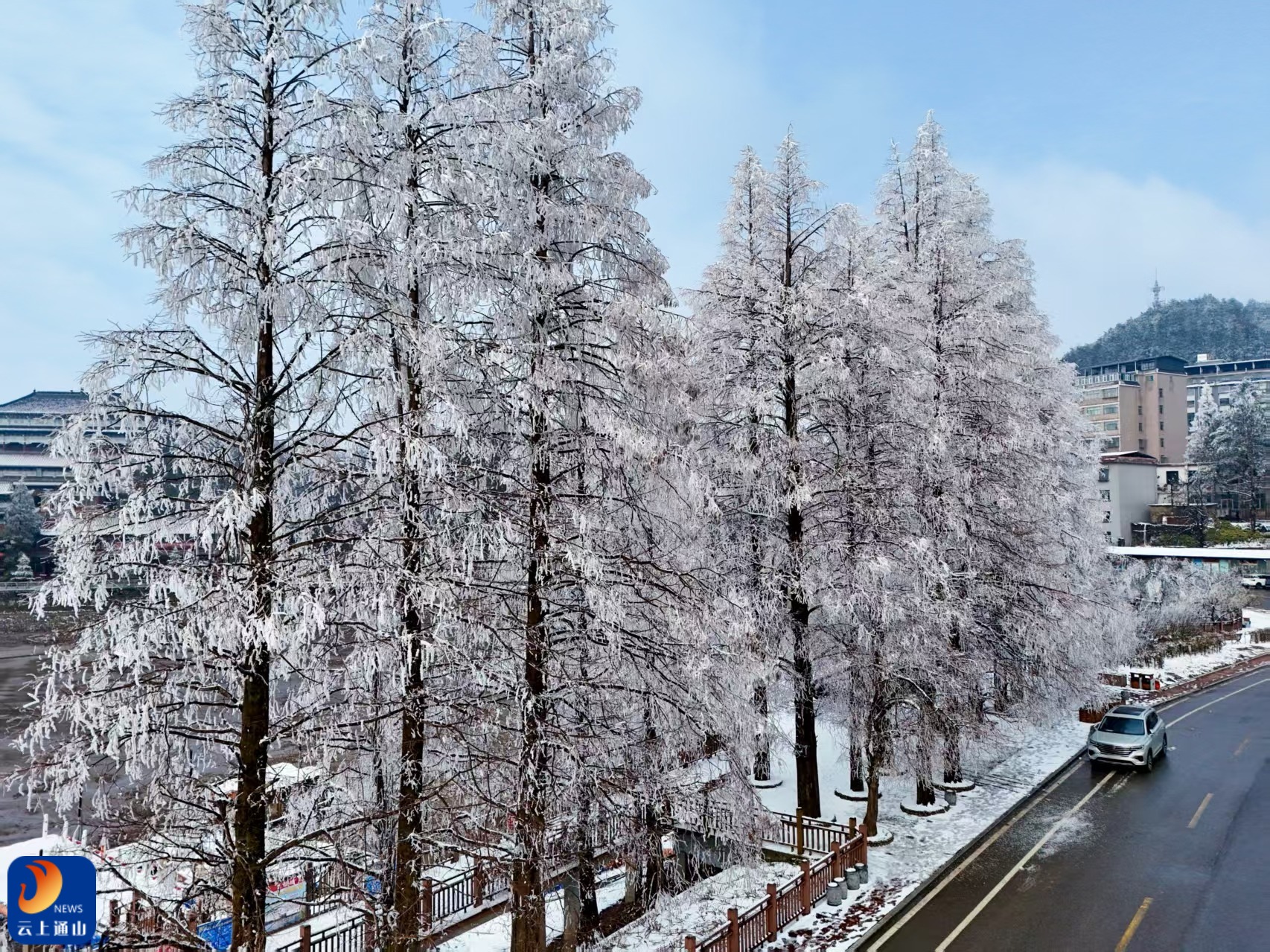 ▲漫山松枝、水杉缀满凝霜,秋的余韵与冬的清冽在此交织,成为山间独特的风景线。