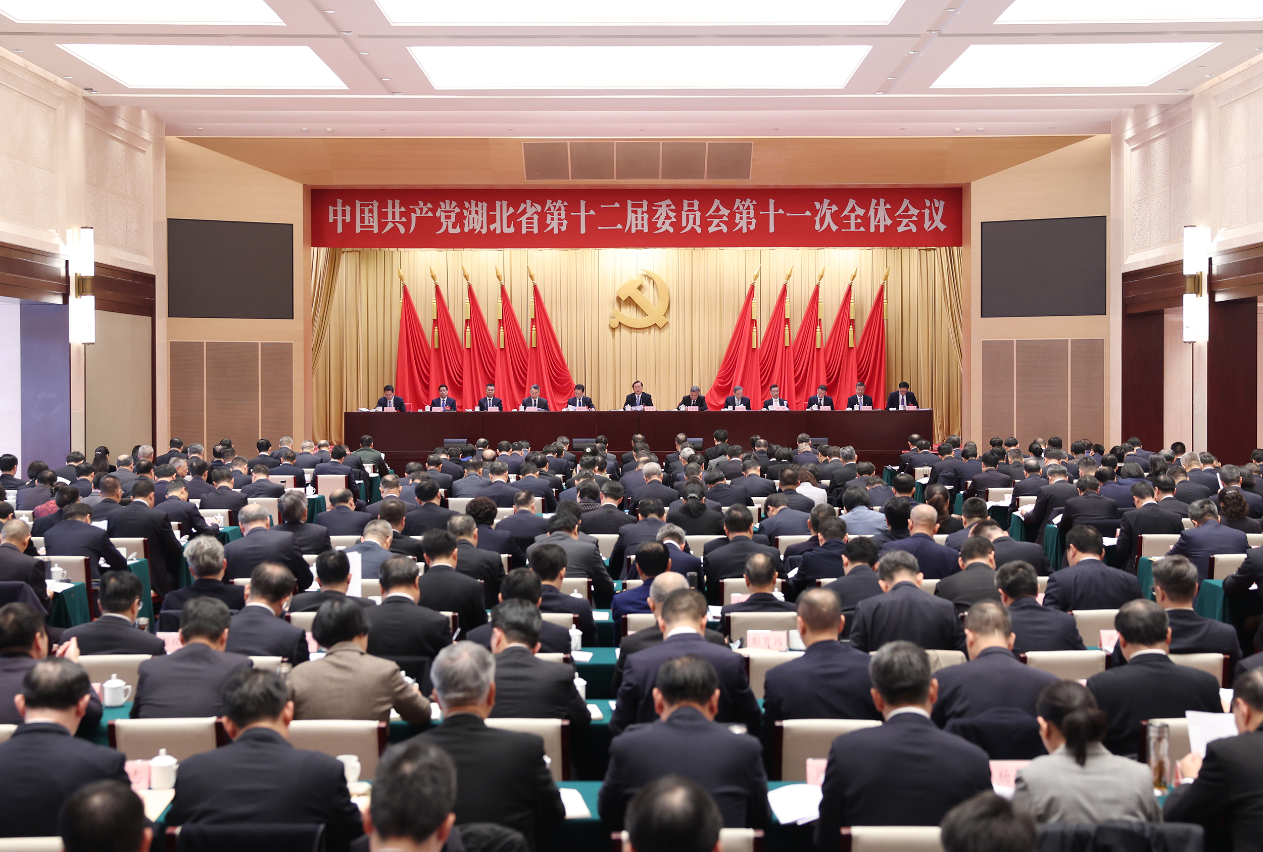 11月21日,中国共产党湖北省第十二届委员会第十一次全体会议在武汉举行。全会深入学习贯彻党的二十届四中全会精神,认真落实习近平总书记考察湖北重要讲话精神,动员全省上下牢记嘱托、勇担使命,鼓足干劲、奋发进取,为确保“十五五”时期加快建成中部地区崛起的重要战略支点取得决定性进展而团结奋斗。