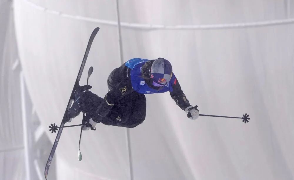2020年1月21日,谷爱凌在瑞士莱森进行的第三届冬季青年奥林匹克运动会自由式滑雪女子大跳台预赛中。新华社记者 逯阳 摄