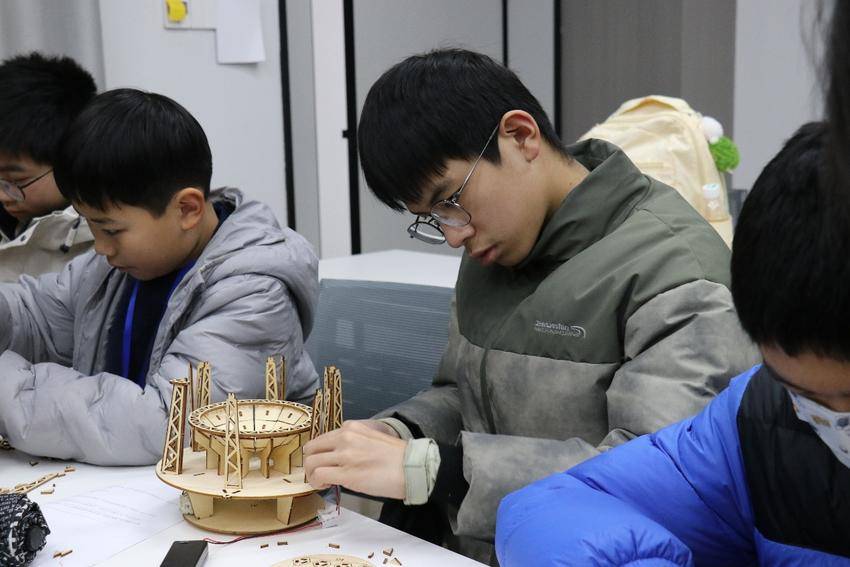 学生们还走进湖北大学量子信息科学实验室,近距离观察量子实验装置并参与互动,感知微观物理的奥秘。在动手实践环节,在大学生辅导员的指导下,学员们亲手制作了“中国天眼(FAST)”模型和“气象雷达”模型,了解大科学装置的意义,感悟深空探测的魅力与科学家精神。最后,学生们通过对“元控自强板”的编程基础学习与硬件外接实操,在开放项目制作中完成了属于自己的自主设计作品,全方位检验了本次科普学习的创新成果。