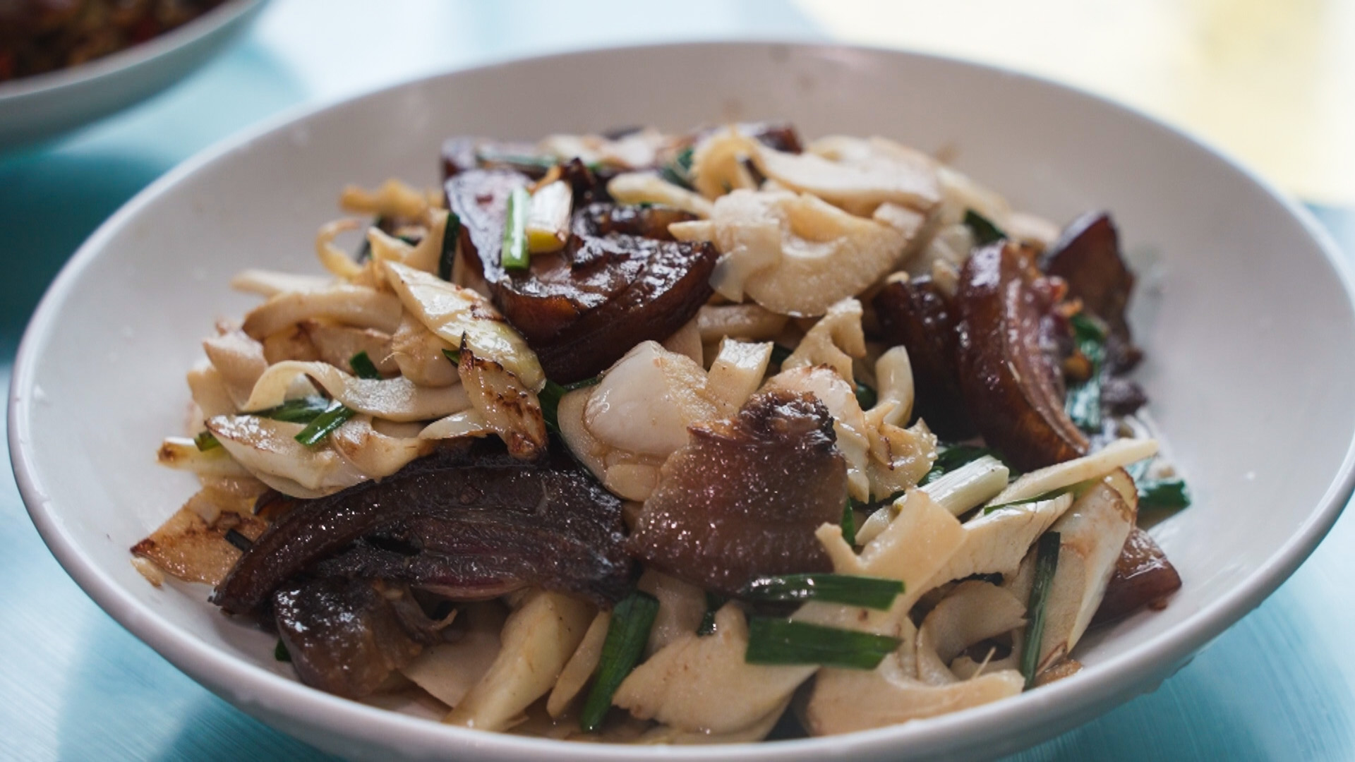 而最刻入崇阳人记忆的,当属雷笋炒腊肉。这道菜是年俗符号,承载着一代代人的新春情怀。崇阳人家的腊肉,腊月腌制、柴火熏制,咸香绵长;新春雷竹笋脆嫩无渣,清甜纯粹,二者碰撞便是最地道的年味。