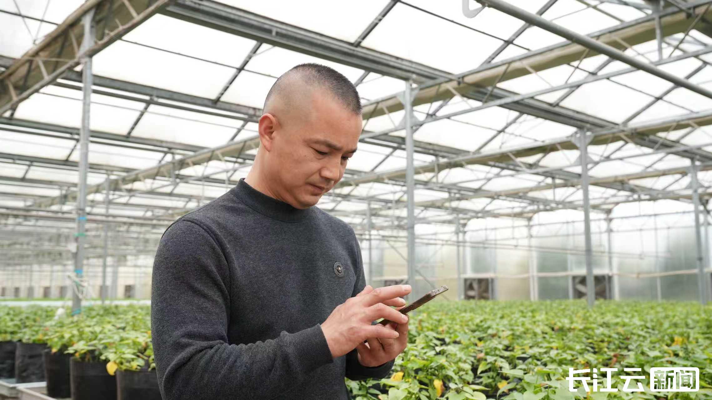 清晨,湖北京瑞通达现代农业科技有限公司的育苗基地内绿意盎然。基地负责人赵开宇坐在办公室里,随着指尖滑动,办公区电子大屏上,各个棚区的温度、湿度、光照等实时数据不断跳动,大棚内部的实时画面也清晰可见。