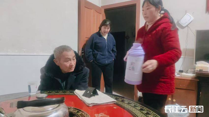 当晚,蒋家坡村村民陈德梅发现一位神情茫然、言语不畅的陌生老人独自徘徊。考虑到夜色渐深、气温偏低,老人年事已高且行动不便,她立即上前耐心询问。老人患有小儿麻痹症,且沟通十分困难,无法说出姓名与家庭住址。陈德梅没有丝毫犹豫,一边迅速联系村干部,一边将老人请到家中,端上热气腾腾的饭菜,搀扶老人围坐在火炉旁取暖喝茶,并轻声陪伴安抚,让老人在陌生之地感受到家一般的温暖。