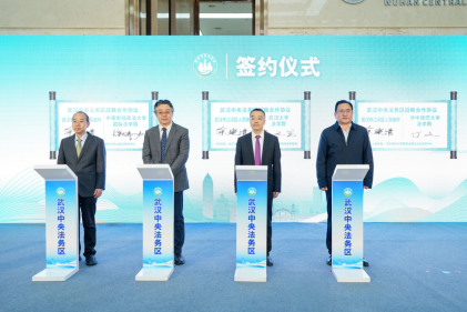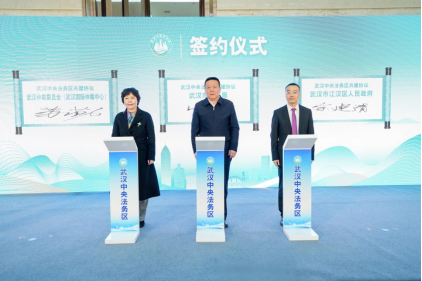 武汉市司法局、武汉仲裁委、江汉区政府签订武汉中央法务区共建协议;江汉区政府与武汉大学法学院、中南财经政法大学国际法学院、华中师范大学法学院签订战略合作框架协议;武汉市律师协会、武汉市江天公证处、武汉仲裁委员会办公室、武汉长江国际商事调解中心签订入驻武汉中央法务区协议。