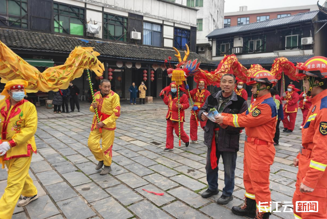 鄂州市消防宣传员在龙灯巡游活动现场开展消防安全知识宣传