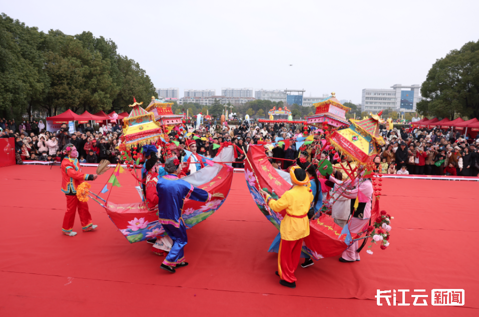 这边非遗体验意犹未尽,那边三棒鼓艺人们早已开唱。婉转的唱腔搭配地道的天门方言,演绎着新编的节日唱段,唱腔高亢质朴、韵味十足,唱的是百姓的幸福生活,道的是新年的美好期盼。一招一式、一唱一和,都透着地道的天门风情,将元宵的热闹气氛一次次推向高潮。
