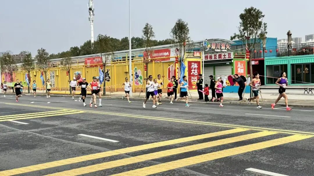 在36—37公里点位处,澴川渔火——这座集美食、非遗、文创、休闲于一体的新晋夜市打卡地标,烟火底色与马拉松的澎湃激情在此交汇,为紧张激烈的赛事增添了缕缕温情与诗意,成为赛道旁独具特色的城市风景线。
