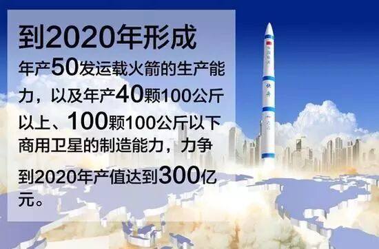 到2020年,武汉国家航天产业基地基地可年产火箭50发,卫星140颗。产值将达到300亿。