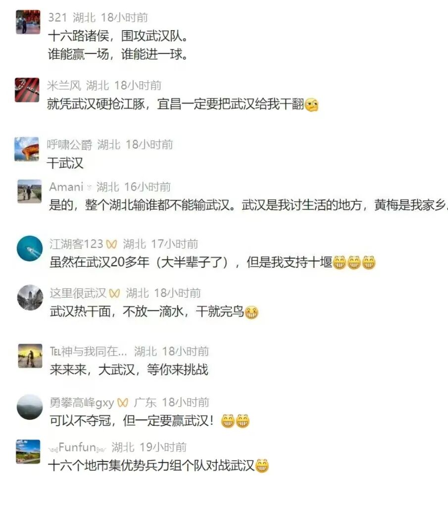 此前,武汉市足球协会通过其官方微信平台向广大江城球迷发出诚挚号召:“不畏山高路远,不惧客场喧嚣。让我们将江城的呐喊汇聚成最坚实的后盾,响彻十堰赛场。以最燃的助威、最齐的声势,为武汉华工科技队注入必胜信念。同袍一心,并肩同行;以热爱为旗,以呐喊为刃。客场亦是主场,热血从未打烊。不论路途远近,无论风雨晴阴,只要身披同一份热爱,我们就是场上不可撼动的第十二人。”