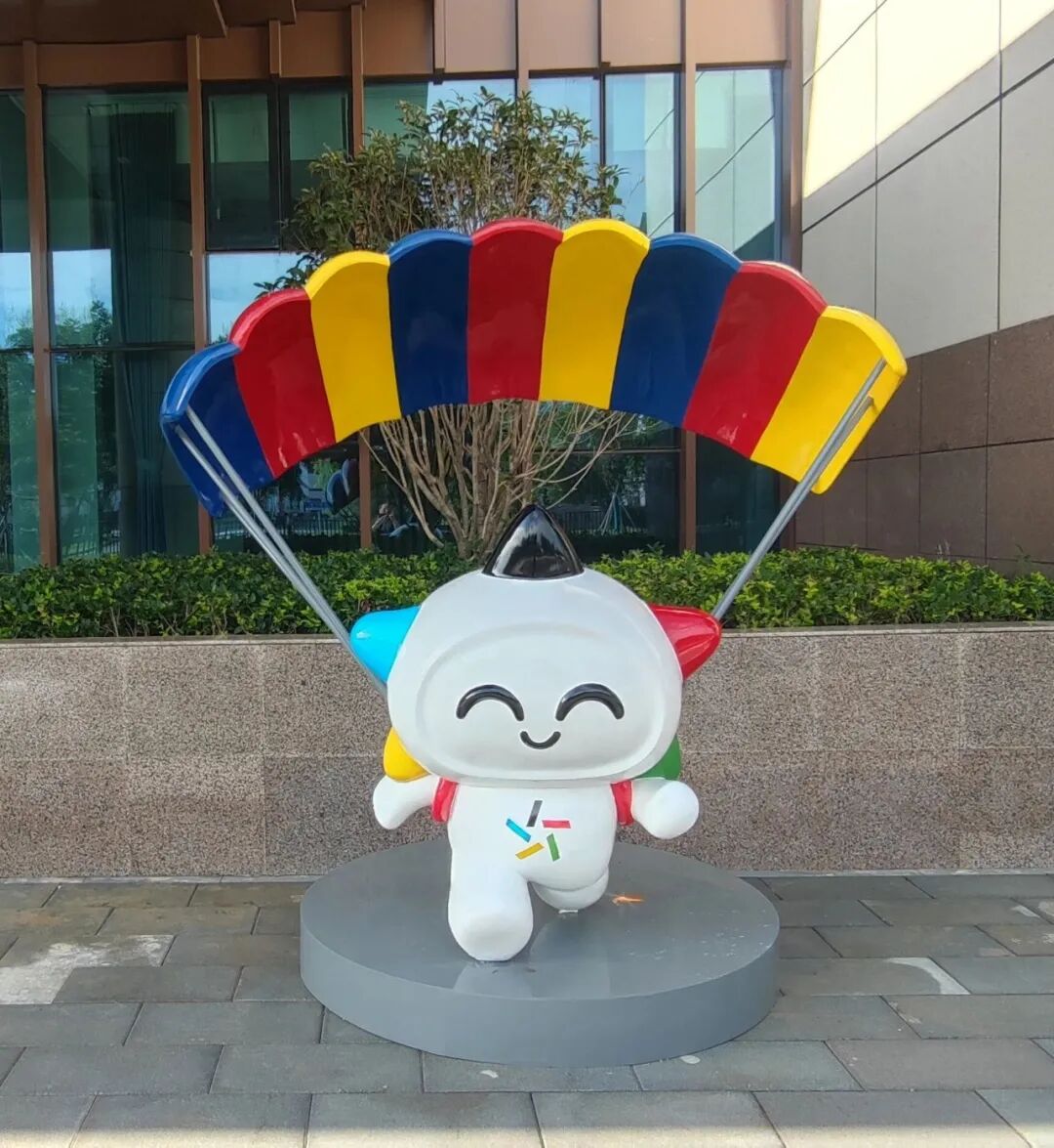 探访员漫步其中,能看到综合楼、综合训练馆、运动员公寓、生活保障房错落分布,室外运动场地点缀其间,让这座训练中心像座开阔疏朗的体育公园。踩着滑板、摆出跳伞造型的乐小星装置不时从转角“探头”,憨态可掬,像藏在园区里的小彩蛋。