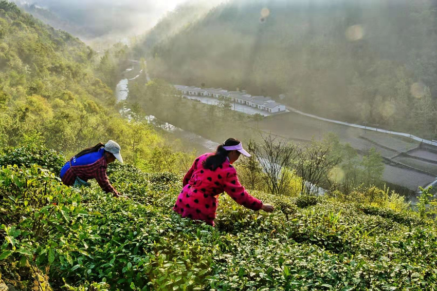 春日的赵湾乡,不仅有杜鹃点缀的青山,更有高山茶园的清新茶香。长岭村、桃庄村依托千米海拔、云雾缭绕的独特优势,发展高山生态茶产业,千亩茶园绿意盎然,成为春日里另一幅流动的画卷。