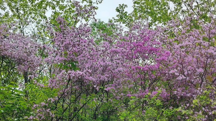 左家庙村地处赵湾乡高寒山区,平均海拔近千米,森林覆盖率高,生态环境得天独厚。春日里,山野间、坡地上、溪涧旁,一簇簇、一丛丛野生杜鹃次第绽放,粉红、淡紫的花朵星星点点,错落有致地点缀在苍翠绿树之间,不张扬、不喧闹,却为静谧的青山增添了一抹灵动的色彩。