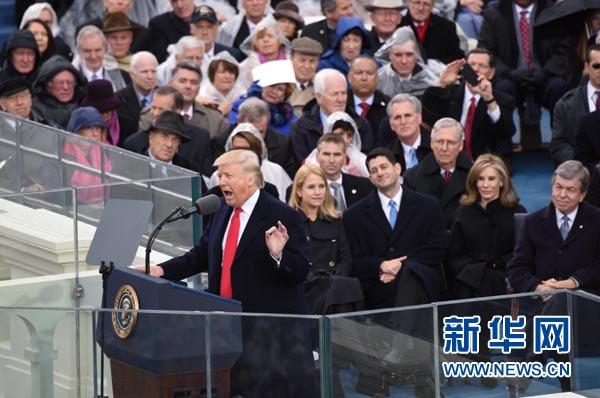 特朗普在就职演说中对华盛顿政治予以抨击,重申“让美国再次强大”。他说,长期以来美国人民没有得到经济发展的好处,这次权力交接不仅是党派和政府之间的交接,也是把权力从华盛顿交给人民,承诺改变就从他就职的时刻开始。他再次强调美国优先原则,不再忽视民众呼声,把美国利益放在首位,呼吁加强控制边境,创造就业,打击恐怖主义,在贸易等问题上考虑美国人民,关注他们的未来。他还呼吁美国保持团结,摒弃偏见和歧视。