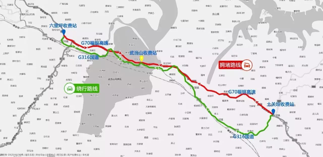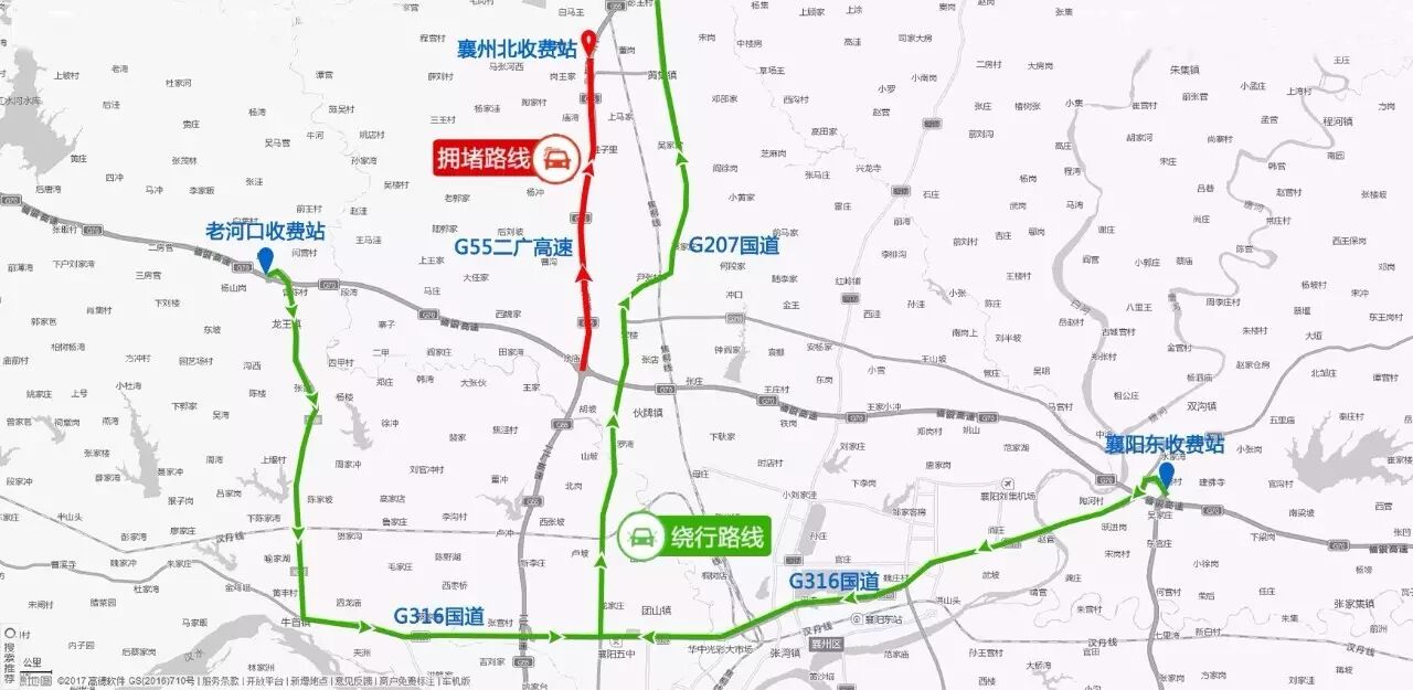 绕行路线:往汉十高速十汉方向车辆,从老何口收费站下站,行驶G316国道,再驶入G207国道进入河南境内;汉十方向来车从襄阳东收费站下站,行驶G316国道,再驶入G207国道进入河南境内。返程也可选择此绕行路线。