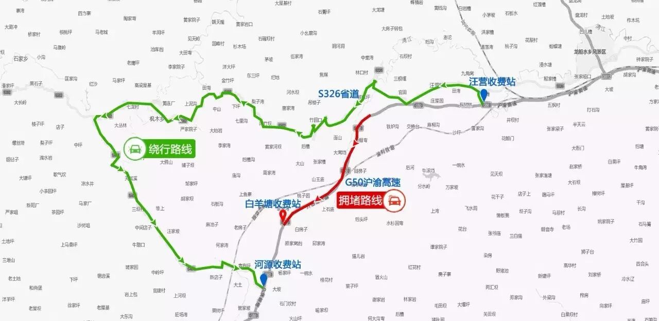 通过神龙溪收费站进入重庆境内的车辆,建议绕行以下路线或者错峰出行。