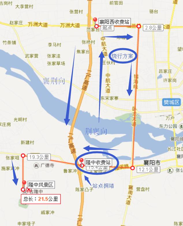 5、襄阳隆中景区绕行路线