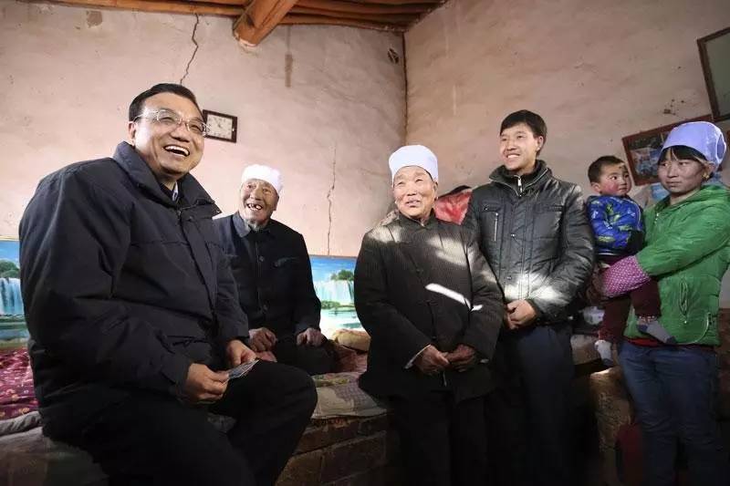 △ 李克强总理在固原西吉县半子沟村特困户王旗家。